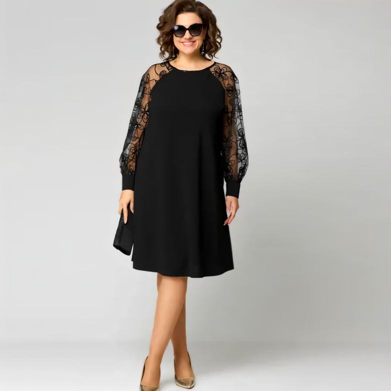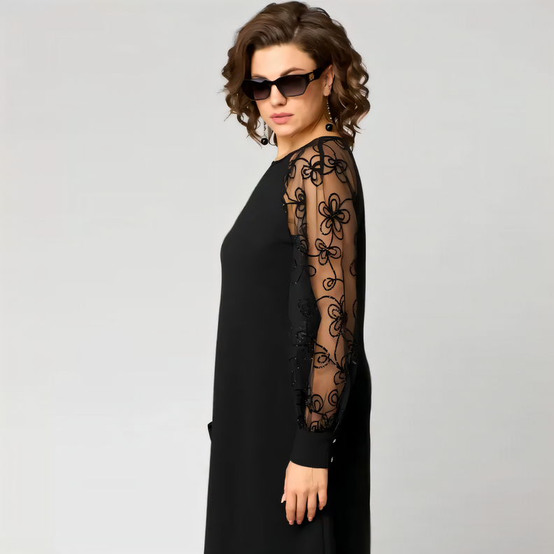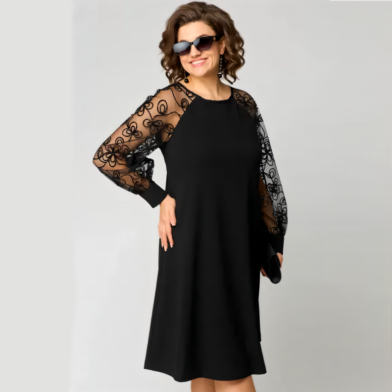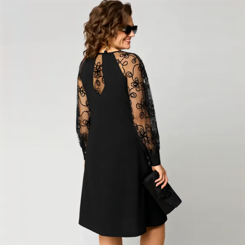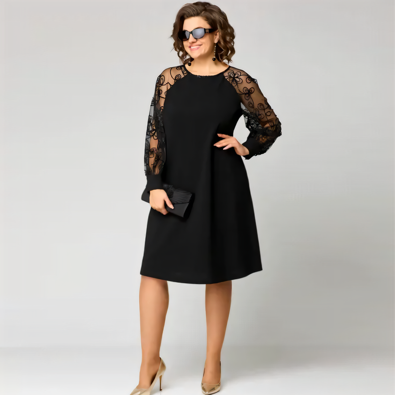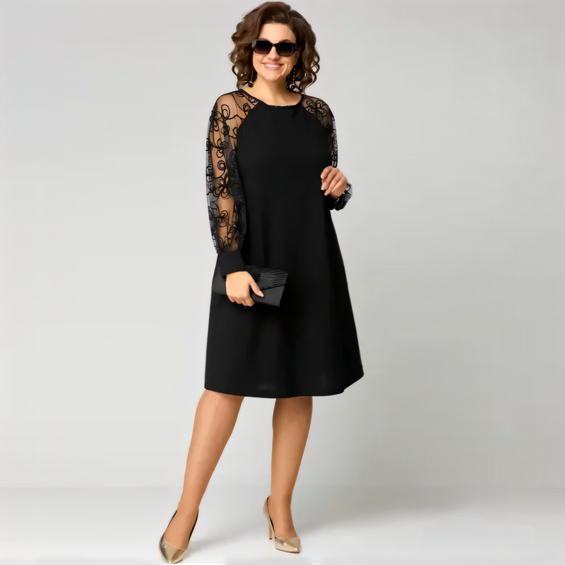 ELEGANT OG KVINNELIG - Kombinasjonen av blonder og kroppsnær styling skaper en feminin og sofistikert look. Kjolen er perfekt til anledninger der diskré eleganse er viktig, mens de lange ermene gir ekstra varme og allsidighet.