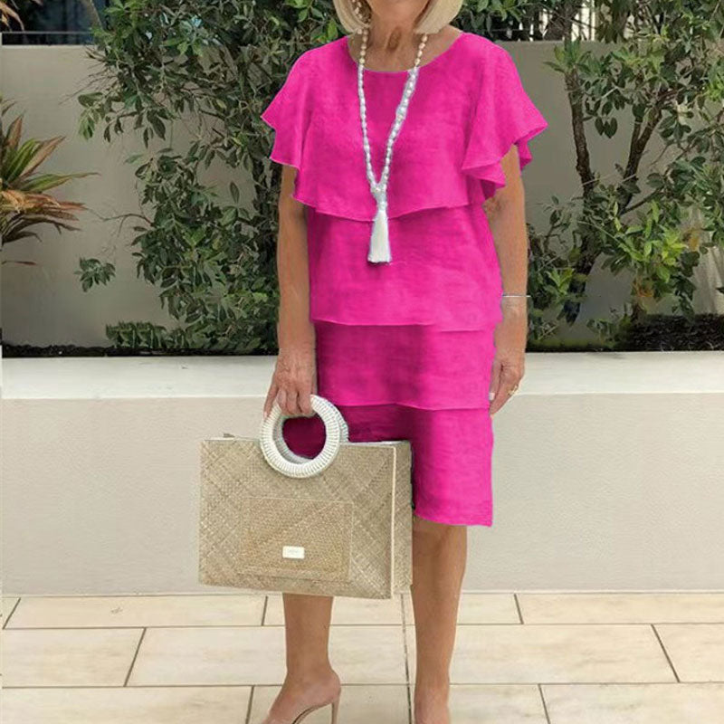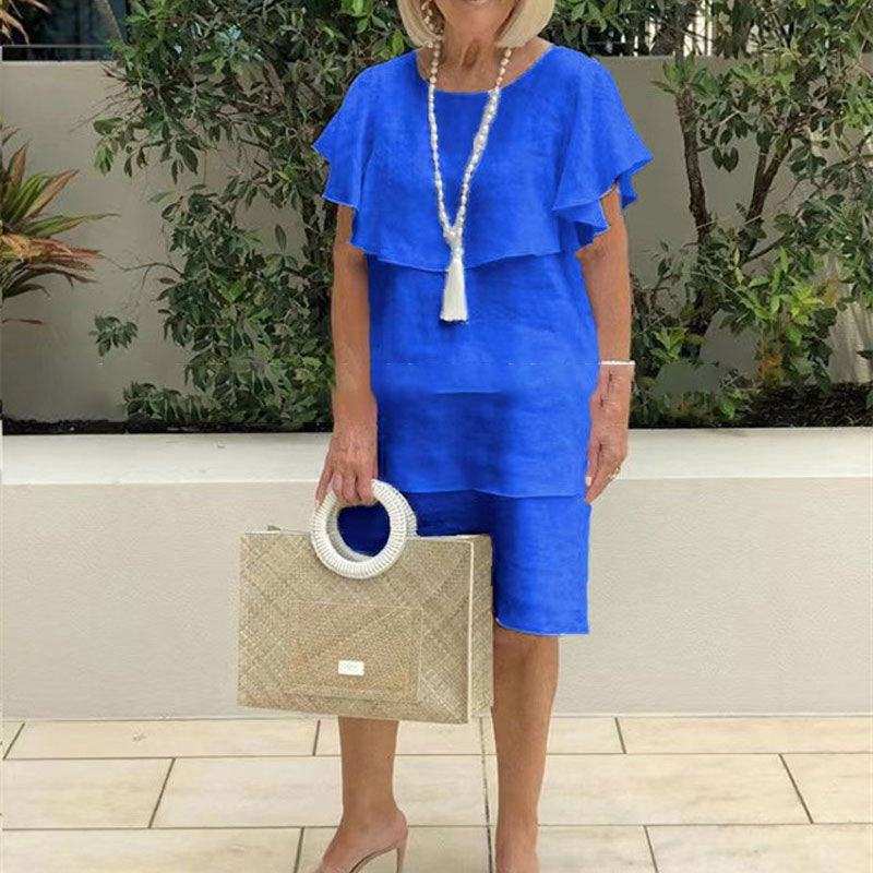 - 1 x Pyöreäkauluksinen, kellohihainen, monikerroksinen midimekko
