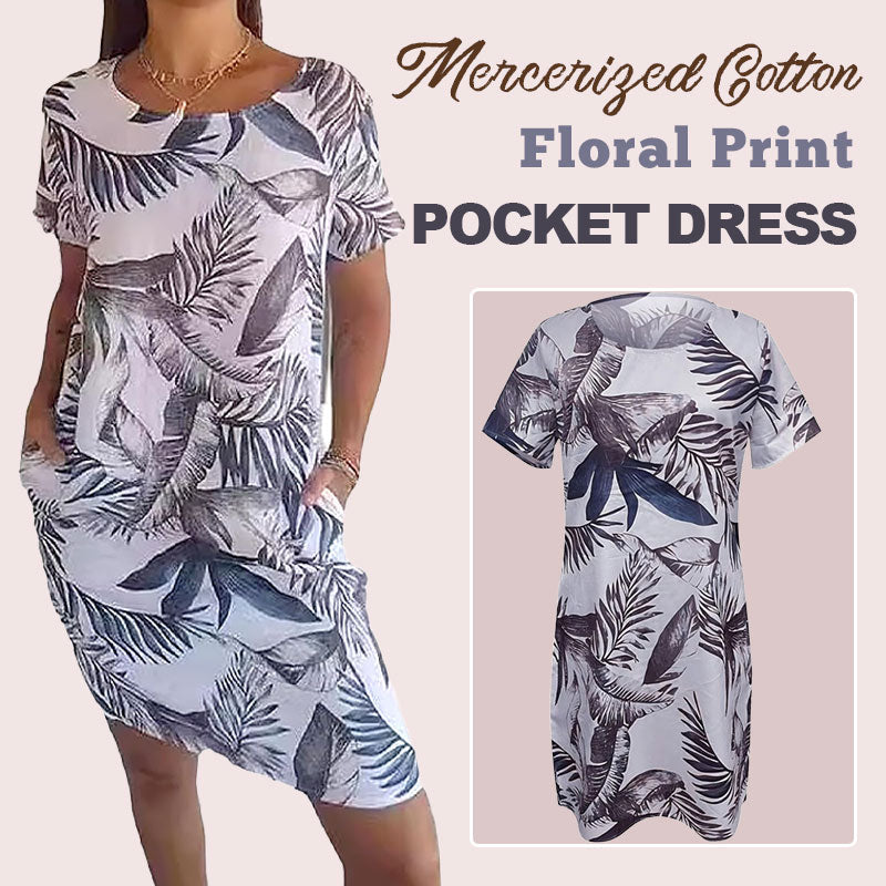 🌼Blomstret kjole med lommer i mercerisert bomull