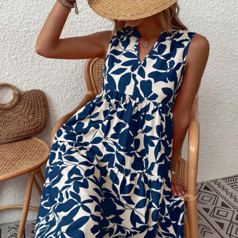 - 1 x Kasvitieteellinen printti V-aukkoinen laskostettu mekko