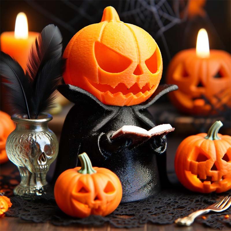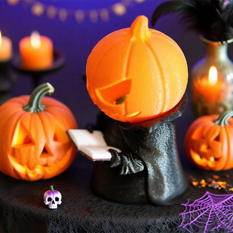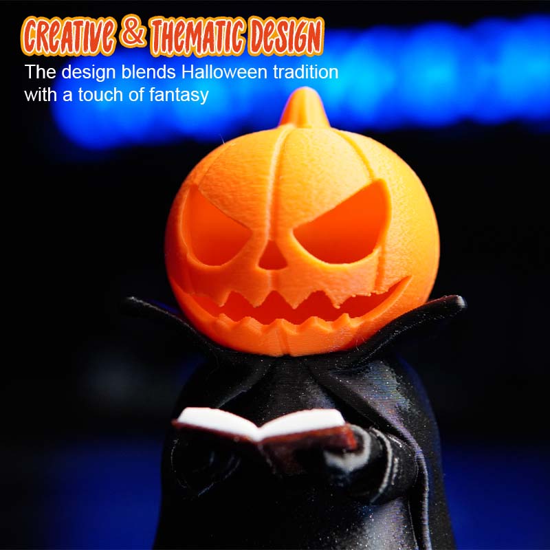 Designet blander Halloween-tradisjon med et snev av fantasi – en figur med gresskarhode som er både morsom og mystisk. Det er ikke bare dekor, det er en samtalestarter! 🧡