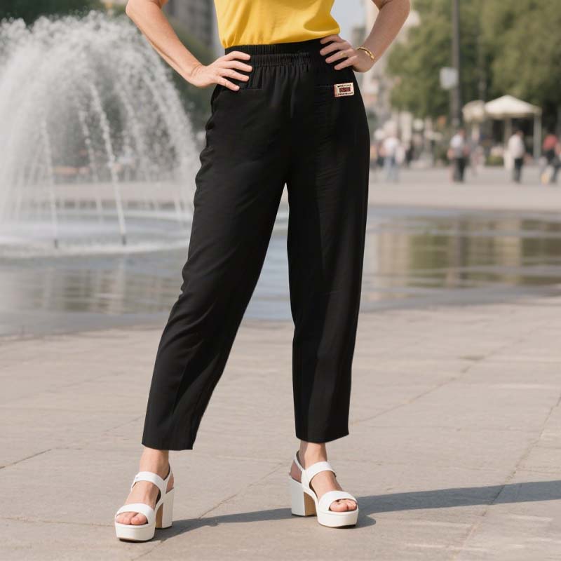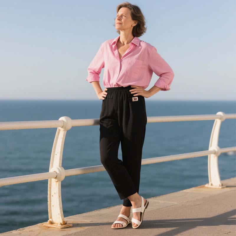 Ei nappeja, ei vetoketjuja – vain pehmeä, joustava vyötärö, joka istuu kauniisti ilman puristusta.