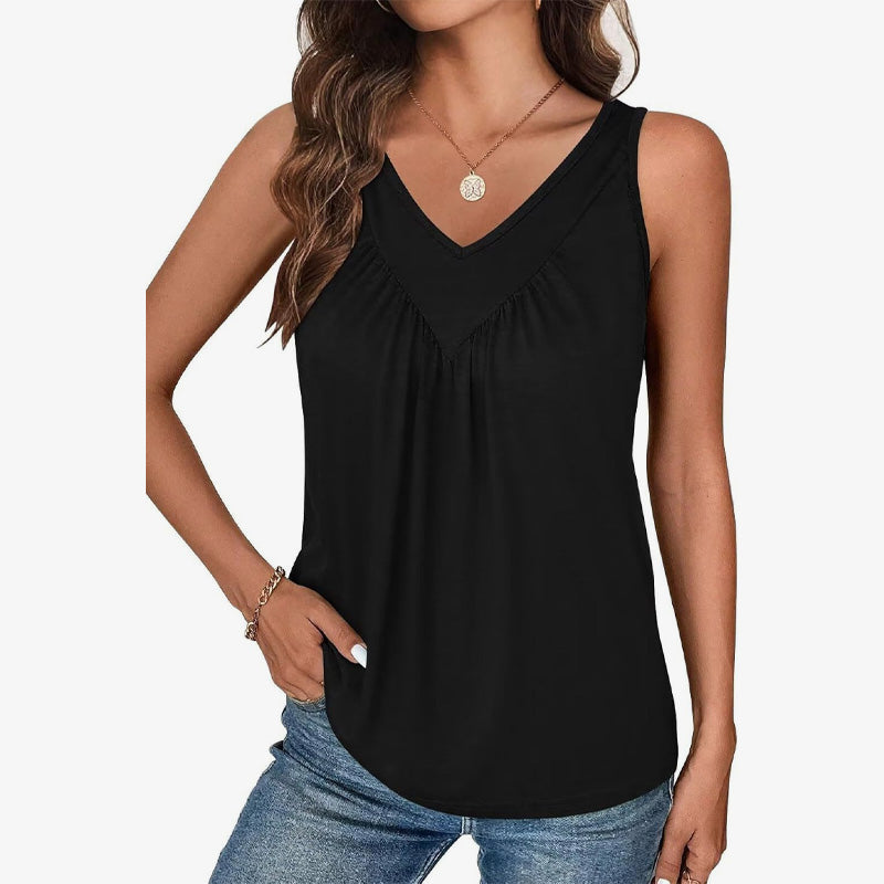 Hihaton naisten toppi, jossa on V-pÀÀntie ja nyppyjÀ
